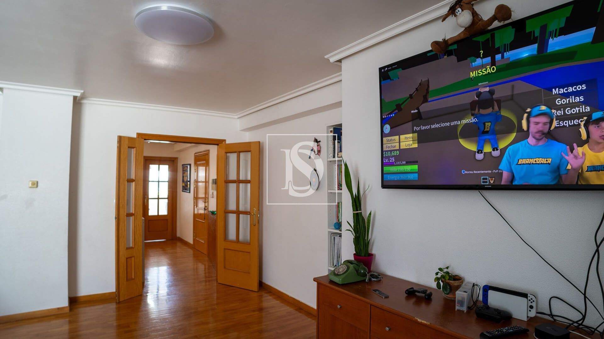 Para além disso, apresenta elevador, aquecimento central a água em todas as divisões, janelas e portas em alumínio c/ duplos vidros e estores de corte térmico, ar condicionado nos quartos de cima, um lugar de parqueamento e uma generosa arrecadação.